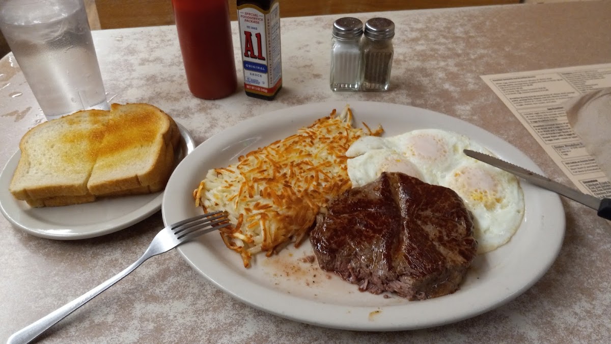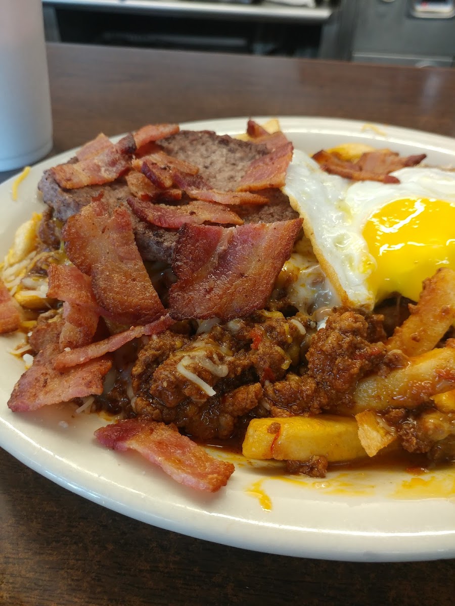 I very much enjoyed the cheese omelette and country potatoes. I took about half home and am looking forward to eating the rest. Generous portions. Great coffee. Brightly-lit compact diner. Service was fast and efficient. My friend had the fish and chips and a bowl of chili and polished them off quick. He's been going here for decades. I love that I can order breakfast food at any time, and got "breakfast" at dinner time.